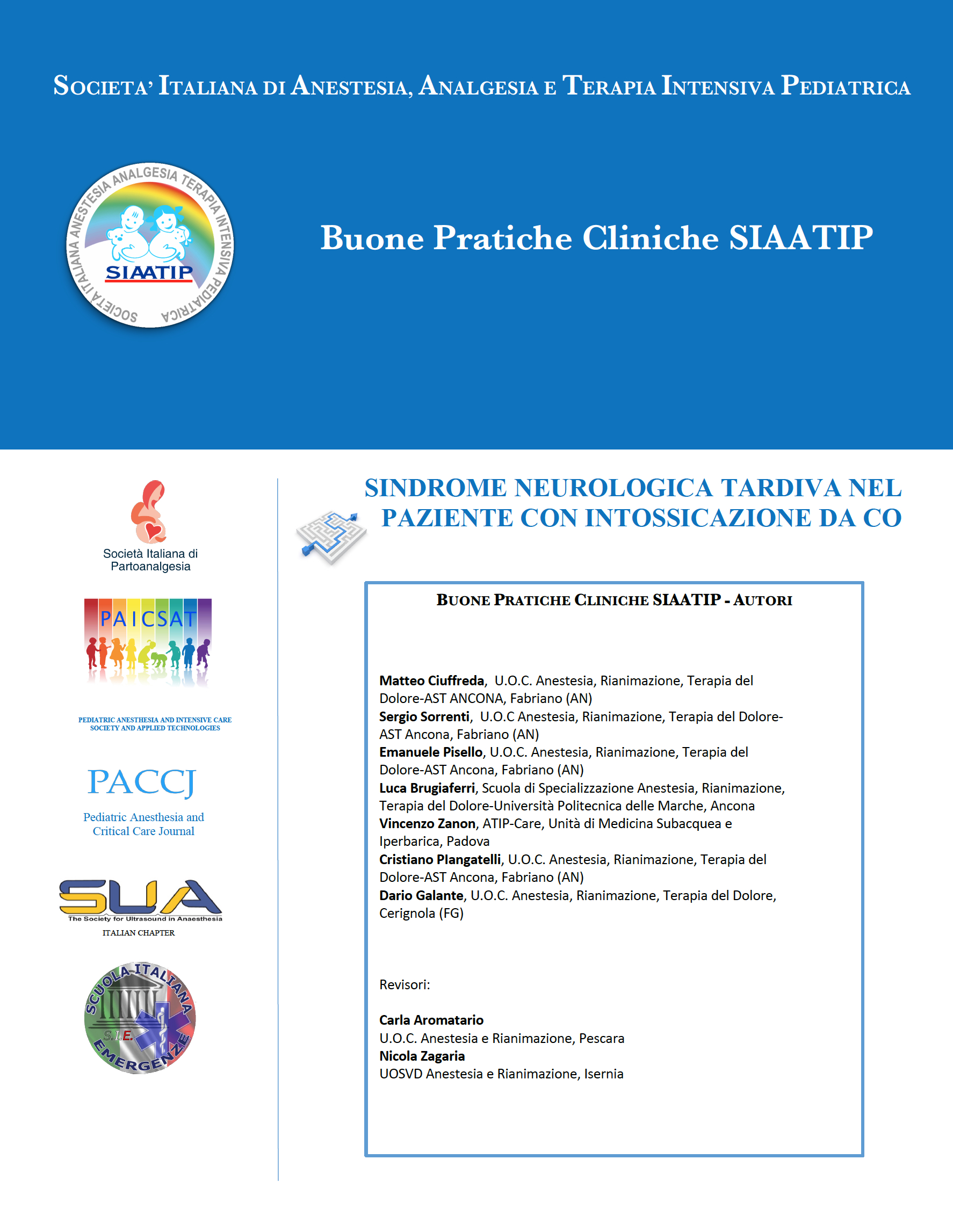 Download Documento Versione 2.0 Versione in Inglese pubblicata su Pediatric Anesthesia and Critical Care Journal (PACCJ) Documento Ministeriale con partecipazione della SIAATIP: